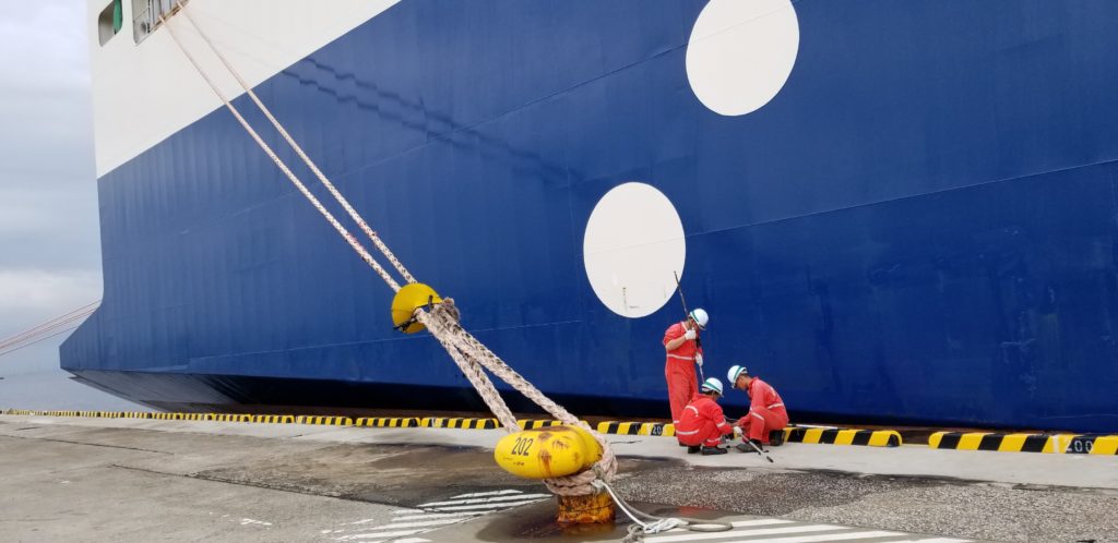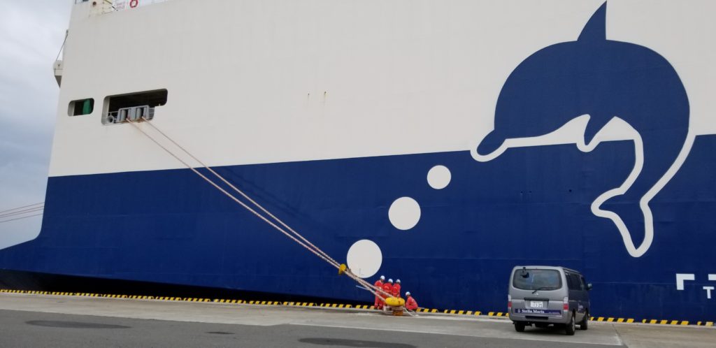 Trans Harmony 1は 結構新しい船で、船内は綺麗で、船員のためのジムも完備されています。貨物の積み下ろし作業がない、日曜日も船員さんは船の外側のペンキー塗りをします。 午前の仕事を終え、若い3人組がヨコハマの見物に行きたいと買い物を行くオフィサーたちとは別行動をとりました。行く方向が違うので、オフィサーたちはタクシー、若い人たちはステラマリスのバンを利用しました。若い3人組はバンの中で楽しくしゃべっていました。4時間ですが、初めての横浜市内での上陸時間を彼らは楽しく過ごしました。