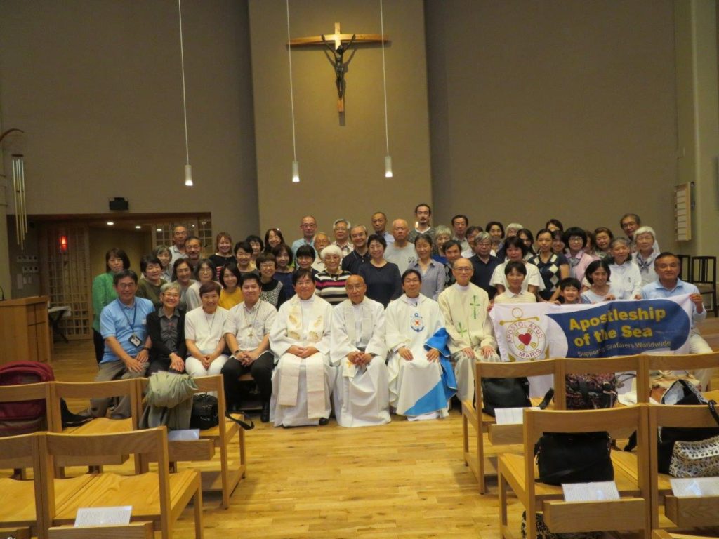 AOSセンターのある末吉町教会に戻った後は、昼食・活動紹介・分かち合い・ミサと1日がかりの研修会でしたが、多くの人に船員さんの存在を実感してもらうことができました。派遣の歌「大波のように」を歌いながら、参加者全員が小さな灯火を胸に各小教区へと派遣されていきました。
